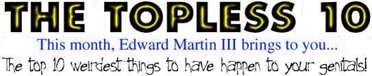 Your genitalia have been uniquely identified as containing clues leading to the conviction of a crazed psychopath who photographs his victims while they lie nude and unconscious. Only the sudden appearance of Jay Leno on television startled your assailant, thus saving your life and convicting him to fourteen consecutive life sentences. The Mayor of Portland awards you an unusually-shaped medallion.7. Representing Your Species